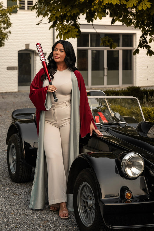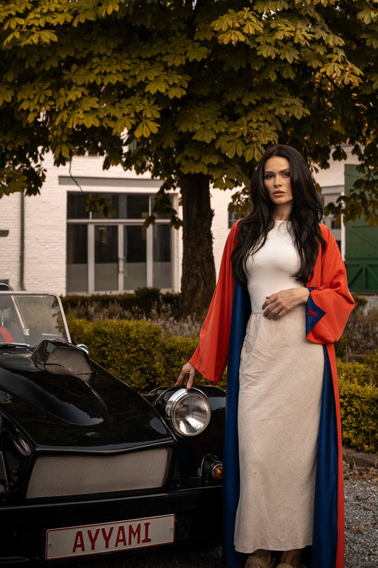 TWO-SIDED SILK ABAYA CHERRY X BEIGE