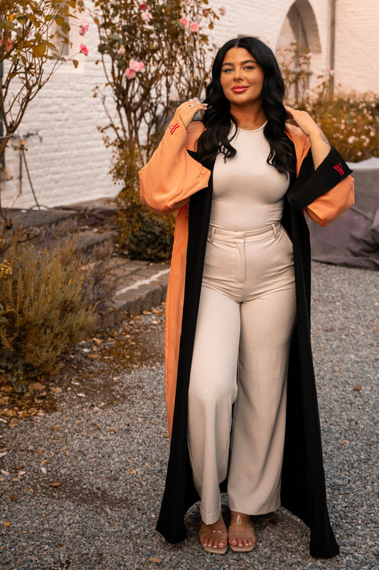 TWO-SIDED SILK ABAYA PEACH X BEIGE