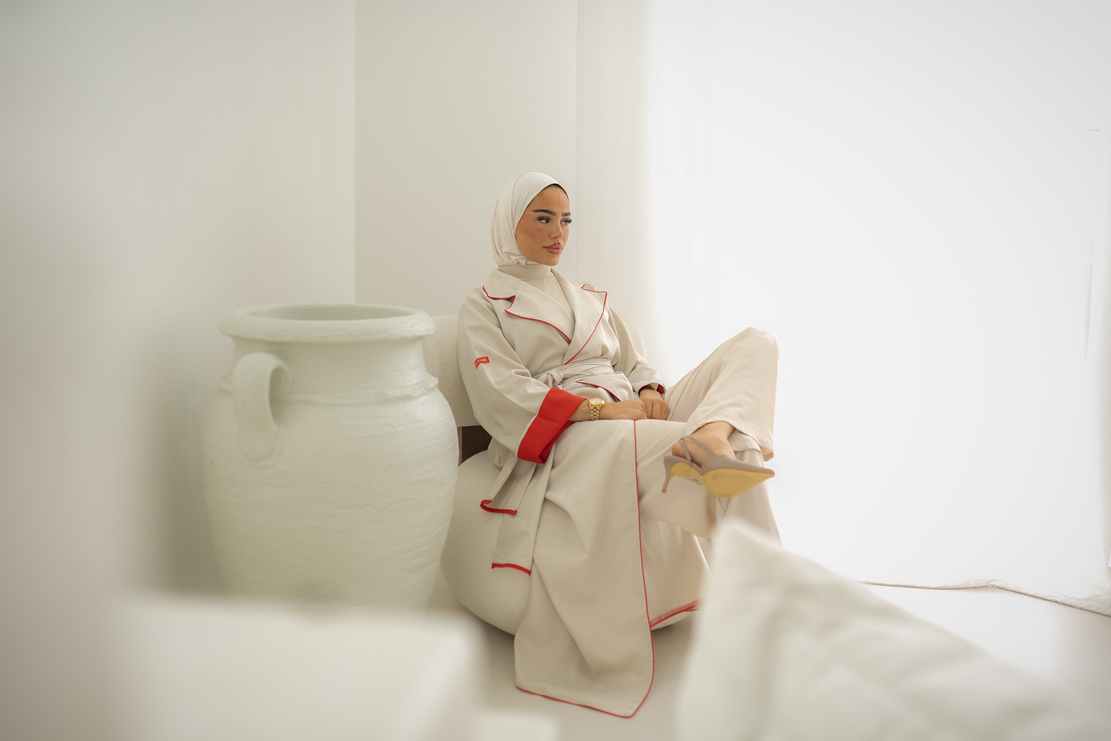 ESSENTIAL ABAYA BEIGE X ROUGE VIN